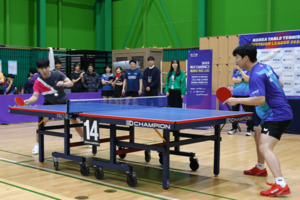 [공감신문] 정재은 기자=대한탁구협회는 지난 23일, 용산 다목적 실내체육관에서 ‘2025 탁구 디비전리그 플레이 위드 스타’를 진행했다.이번 프로그램에는 약 200명의 참가자와 가족들이 참석해 본선 경기에 앞서 마련된 체험형 행사에 참여했다.행사는 생활체육 참가자들이 국가대표 전·현직 선수들과 직접 교류할 수 있는 기회를 제공하기 위해 기획됐다. 현장에는 대한탁구협회 실무부회장이자 올림픽 금메달리스트인 한국거래소 유남규 감독과 한국거래소 소속의 곽유빈 선수가 참여했다.시타 행사에서 두 선수는 짧은 랠리를 선보였으며, 어린 참가자부