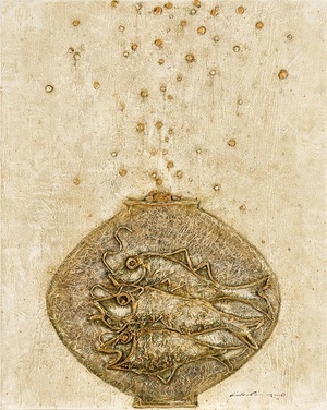 [공감신문] 최선은 기자=로하갤러리는 한국 현대미술 작가 엄혜란의 ‘입체 회화’ 작품을 소장하고 관련 전시를 소개했다.엄혜란 작가는 한지를 쌓고 긁는 반복적 조형 행위를 통해 내면의 긴장과 리듬을 시각화하는 작업을 선보여 왔다.작가는 미국 체류 당시 마주한 한지 포장지에서 한국적 정서를 떠올리며, 이를 토대로 한지의 물성과 황금빛 색채를 결합한 독창적 회화 작업을 구축한 것으로 알려졌다.로하갤러리는 현재 ‘물고기 노는 달항아리’(2022, Mixed media, 72×90cm) ‘황금 토우항아리’(2022, Mixed media,