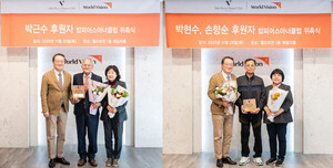 [공감신문] 신선미 기자=국제구호개발 NGO 월드비전(회장 조명환)은 지난 20일 서울 영등포구 여의도 소재 월드비전 본부에서 박근수 후원자와 박현수·손향순 후원자를 각각 ‘밥피어스아너클럽(Bob Pierce Honor Club)’ 회원으로 위촉했다고 밝혔다.‘밥피어스아너클럽’은 월드비전 창립자 밥 피어스(Bob Pierce)의 이름을 따 만든 고액 후원자 모임으로, 누적 후원금이 1억 원 이상인 후원자 중 지구촌 문제 해결에 공감하고 나눔의 가치를 함께 실천하는 이들을 위촉하고 있다. 모임 회원들은 국내외 각종 구호사업과 개발사업